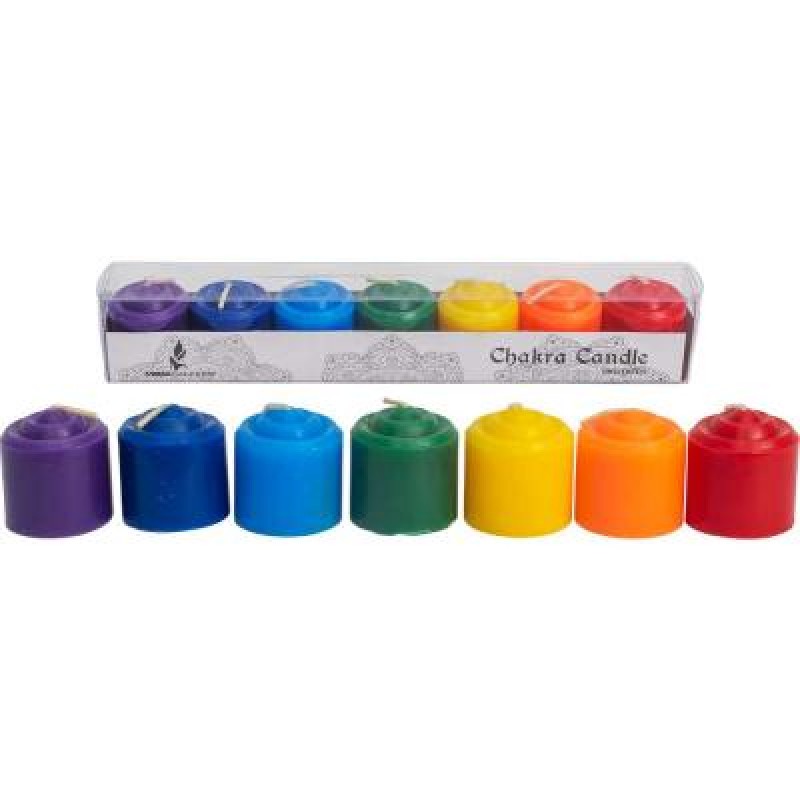 This beautiful candle set includes 7 chakra coloured votive candles measuring 1.5″ tall 1 3/4″ wide. Wonderful for your chakra altar displays, meditation and relaxation. Comes nicely packaged for giving.