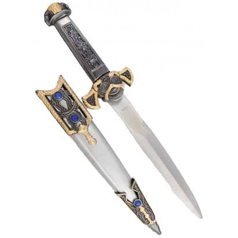 Decorated with elaborate scroll work in tones of silver and gold, this ritual athame inspired by medieval Celtic design. 12 1/2″ – 7 1/2″ blade.